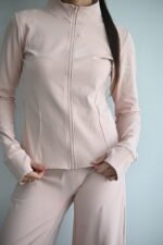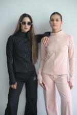 This fashionable 3-piece set includes high-waisted leggings, a fitted jacket, and a sports bra. Designed to be durable, it retains its colour and shape after every wash, ensuring long-lasting wear without fading or sagging.